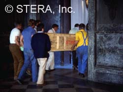 The STURP team moves their equipment into the Royal Palace prior to their examination of the Shroud in 1978.