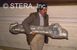 Prof. Luigi Gonella, Scientific Adviser to the Archbishop of Turin, helps the STURP team move their equipment into the Royal Palace.