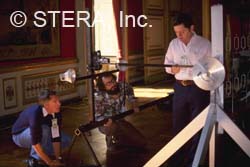Vern Miller, Sam Pellicori and Don Devan (l to r), STURP photographic team members, set up photographic equipment for their examination of the Shroud in October 1978.