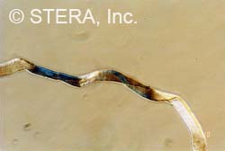 Figure 4. Cotton fiber removed from frayed end of Raes thread R14. 315X Magnification
