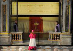 For several months rumors have been flying that the Shroud would be publiclly displayed again in 2015, even though the next officially scheduled public exhibition had originally been set for 2025 by Pope John Paul II. As of this morning, it is official! The Shroud will go on public display in the Cathedral of St. John the Baptist in Turin, for around 45 days between the Easter season (from mid-April 2015) to the closing celebrations of the bicentenary of the birth of St. John Bosco (August 16th, 2015). The official announcement that a 2015 public exhibition has been authorized by Pope Francis was made this morning by Archbishop of Turin Cesare Nosiglia and is detailed in an English language news release from the Centro Internazionale di Sindonologia titled Ostensione della Sindone 2015 (Holy Shroud Public Display 2015). You can also find the text of the Message From the Custodian on the Sindone.org Website. (Link no longer available). Specific dates have yet to be announced, but of course, we will keep you updated as soon as more information becomes available.